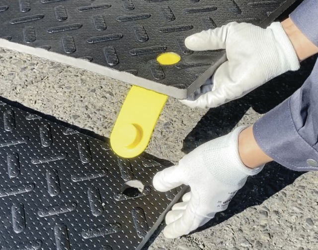 往来の敷鉄板のように、重機を必要としないため現場での事故を防ぐことが可能です。また、鉄板のような使用時の跳ね上がりもありませんので車両・歩行者通行時の事故防止